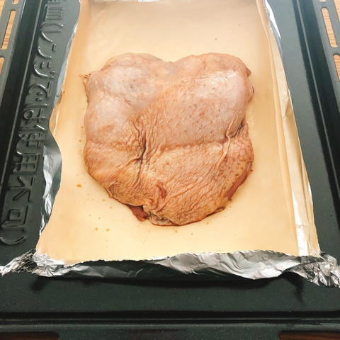 200〜220℃オーブンで皮を上にした鶏モモを20分ほど焼く。出来上がり!